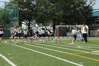 実際に走って、ハードルを跳び越しています。