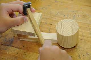 いろいろな形の木片を選び、組み合わせて釘を打っています。どんな立体ができるか楽しみです。