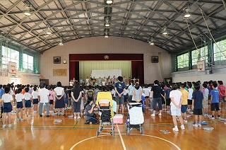 今日のなの花タイムは音楽集会です。全校児童が体育館に集まりました。