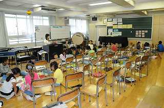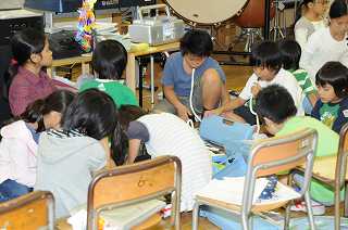 グループに分かれて、鍵盤ハーモニカの練習をしています。