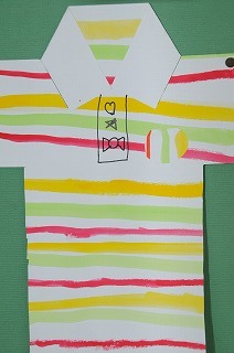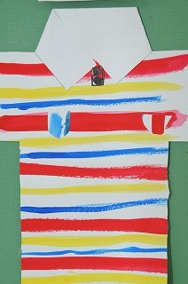 筆を使って太さの違う線を描き、Tシャツのがらを作りました。