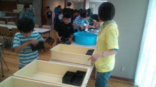 宿舎にいます。お昼ご飯で使った弁当箱を片付けています。15:15
