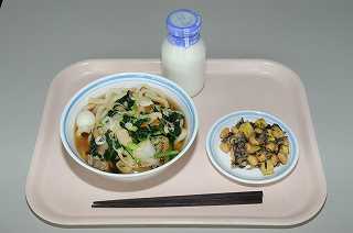 岩石揚げは、見た目がごつごつしてしていて、まるで岩のようなので、岩石揚げと名前をつけました。大豆やサツマイモが入ったおいしいかき揚げです。また、今日のちゃんこうどんに入っている白菜は、5年生が八ヶ岳自然宿泊体験教室で行った長野県八ヶ岳からきました。