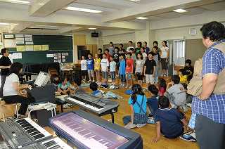 学年合同で合唱の練習をしています。