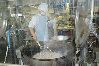 ※真ん中の写真は柳川風丼の具を煮込んでいるところで、下の写真はもちもち豆腐ドーナツを一つ一つ成形しているところです。
