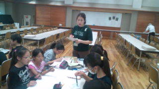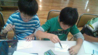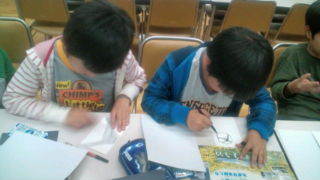 宿舎にいます。学習会で絵手紙を書いています。15:50