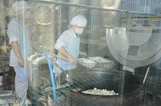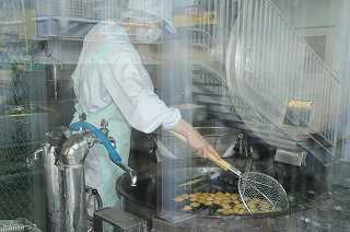 ※真ん中の写真はゴーヤチャンプルーに使う豆腐をゆでているところで、下の写真はサーターアンダギーを揚げているところです。