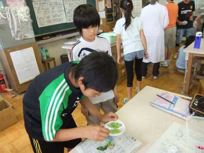 植物の葉をエチルアルコールやヨウ素液を使い、