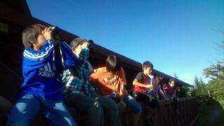 八ヶ岳ふれあいセンターにいます。外では双眼鏡で月を見ています。16:00