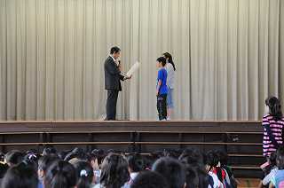 9日のNHK全国学校音楽コンクール全国コンクールで銀賞を受賞した油面小合唱団の表彰を行いました。