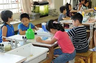 水のかさの予想をしたり、計り方を確認したりしています。