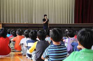 健康トレーナーから、毎週火曜日の中休みにおこなっているスポーツタイムの紹介がありました。