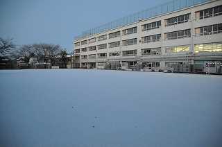 学校が白一色になっています。