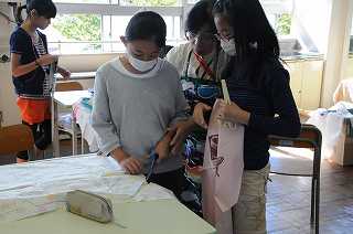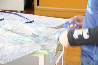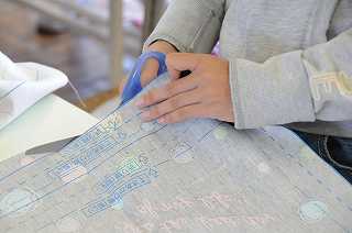 布の裁断の作業を進めています。