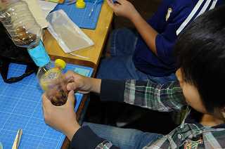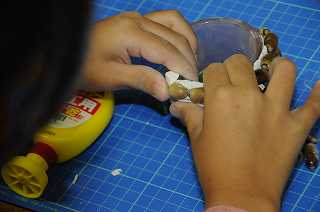 先日、林試の森公園でひろってきたどんぐりで工作を作っています。