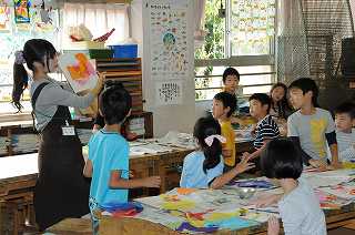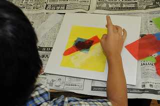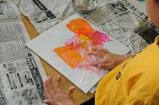 のりとお花紙を使って作品を作っています。