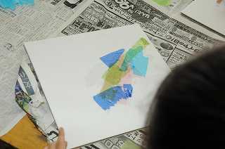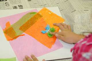 今日の図工は、のりとお花紙を使って作品を作っていきます。
