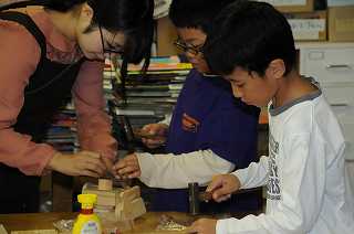 釘と木片を使って、自分のイメージした形を作っています。
