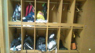 学園にいます。部屋で荷物の片付けをしています。17:45