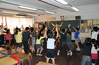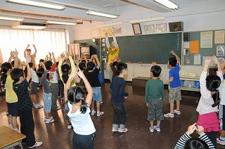 英語の歌に合わせて体を動かしています。