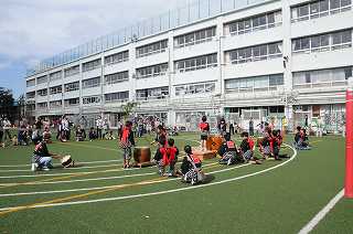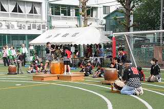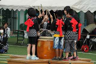 開会式の前のオープニングに、児童館の子どもたちによる太鼓の演奏が披露されています。