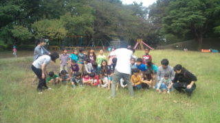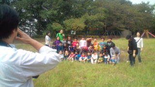1年生が多摩川台公園にいます。集合写真を撮っています。10:10