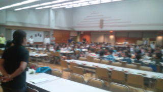 学園にいます。夕食の準備が終わりました。田道小学校との交流会を行っています。18:00