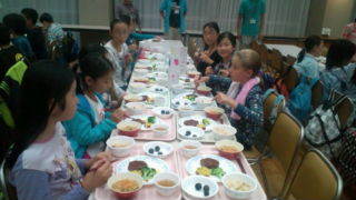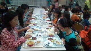 学園にいます。田道小学校との交流会が終わり「いただきます」をしました。18:10