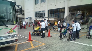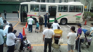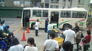 わかたけの子どもたちがバスに乗って下校します。1日よく頑張りました。