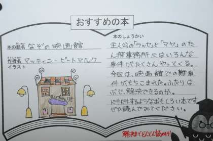 今月は読書月間です。子どもたち一人一人が自分が読んだ本でおすすめの本をカードに書いています。