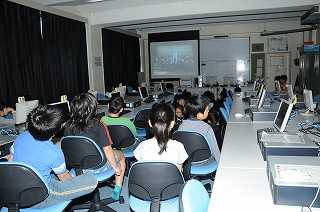 ビデオに撮った自分の演技を見て、直すところを確認しています。