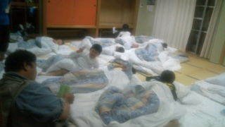 各部屋では班長会議の話を伝えた後、みんなが布団に入りました。20:45