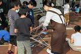 新聞紙を丸め作ったたくさんの棒を材料に、作品を作っています。