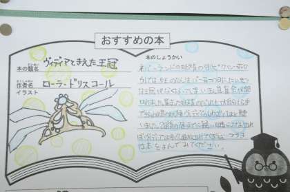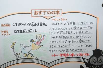 今月は読書月間です。子どもたち一人一人が自分が読んだ本でおすすめの本をカードに書いています。