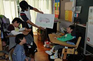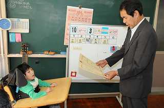 働く消防写生会の作品が入選した2年生に、校長が賞状を渡しました。