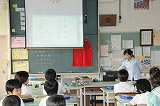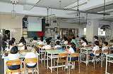 今日は、家庭科室で漢字の学習をします。