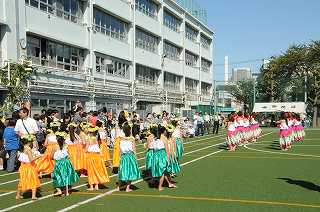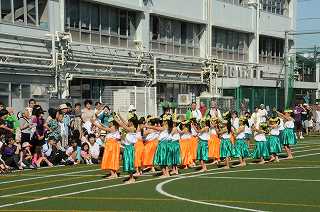 フラダンスの演技です。大人と子どもがそれぞれ素敵なフラを演じています。