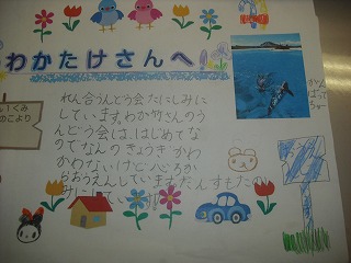 2年生がわかたけ学級の子どもたちに連合運動会参加についての応援メッセージを書き、届けました。