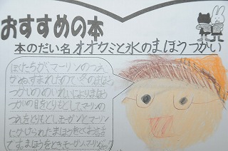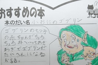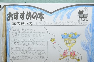 今月は読書月間です。子どもたち一人一人が自分が読んだ本でおすすめの本をカードに書いています。