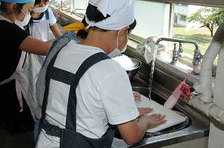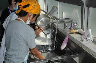 後片付けを協力して進めています。