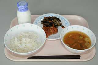 白いごはんはそれだけで食べても甘みがあっておいしいのですが、おかずと一緒に食べるとさらにおいしいです。ちなみに、ごはんは左側、みそ汁は右側に置いていますか。左利きの人は、逆でもいいです。