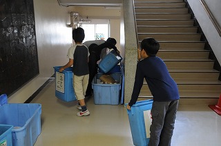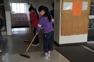 給食時間が終わり、掃除が始まりました。