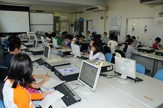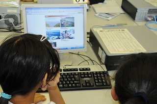 興津自然宿泊体験教室の事前学習が始まりました。今日はコンピュータを使って興津について調べています。