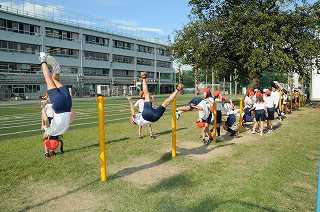 鉄棒の練習をしています。
