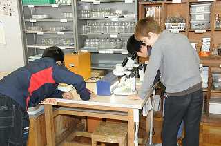 地層や岩石について調べています。