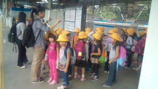 1年生が多摩川台駅に着きました。電車に乗ります。13:25