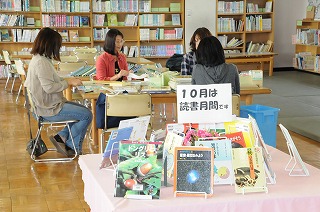木曜日はアリスの会の皆さんが図書室で作業をしてくださっています。今日は本の分類表を張り替えてくださっています。