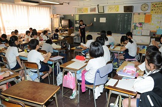 友だちの発表を菊準備をしています。