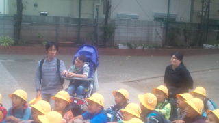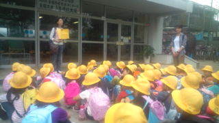 1年生が学校に着きました。帰校式をしましています。14:15