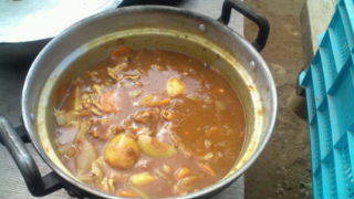 内浦山県民の森にいます。カレー作りが始まりました。作業分担をして進めています。早い班は出来上がりました。10:55